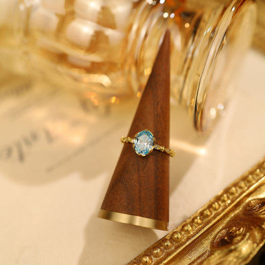 Sterling Silver Adjustable Blue Gemstone Ring – Gold-Plated Elegance