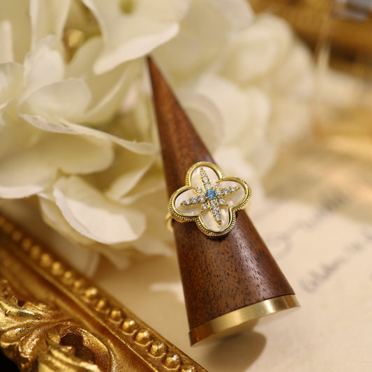 Gold-Plated Mother of Pearl Flower Ring – Elegant Four-Leaf Clover Design